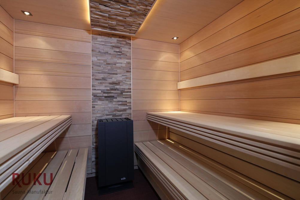 Le saune RUKU-Thermium si basano sul sistema di pannelli a raggi infrarossi. Paragonate ad una stufa tradizionale questo sistema permette una sudorazione in un ambiente più piacevole con una migliore ossigenazione. In aggiunta a tutte le cabine (sauna tradizionale/finlandese o a infrarossi) RUKU-Meditherm permette la trasformazione della stessa in un bagno a vapore o aromatico.